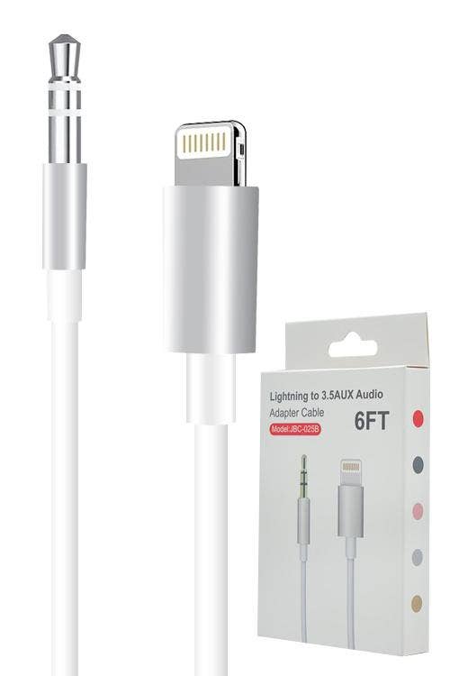 Iph To Male Auxiliary Cable JBC025B black and white 6ft