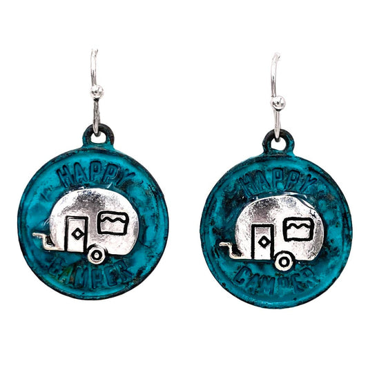 Happy Camper Silver Gold Hook Earrings